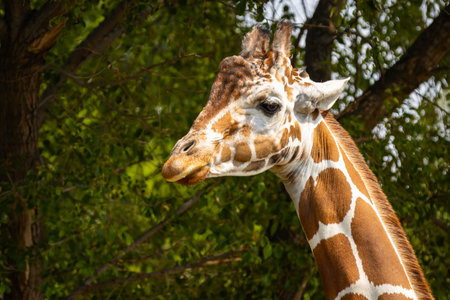 Tall endangered giraffe living at the zoo