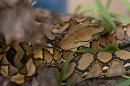 Close-up portrait of a boa constrictor (Python reticulatus)