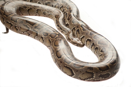 Python snake in studio over white background