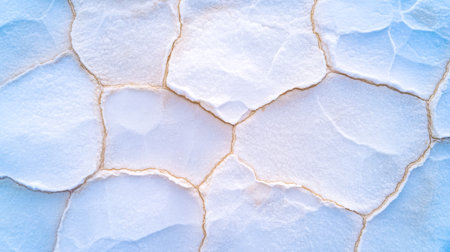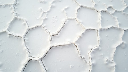 Hexagonal salt flat mosaic with stark white crystals surreal and otherworldly