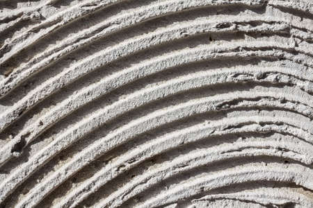 Facade plaster background. Gray plaster stripes pattern. Tile adhesive texture. Home renovation texture. White lines backdrop. Stucco wall background.