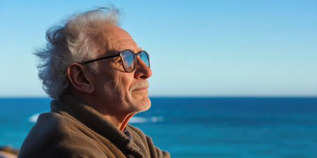 Fashionable Senior Man Against Serene Beachscape