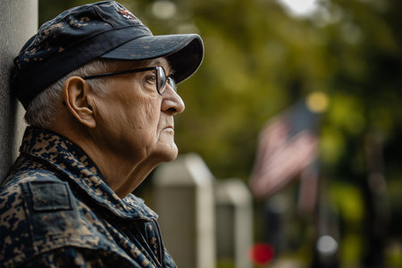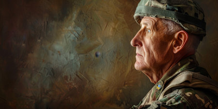 Reflective veteran with military memorabilia, embodying the enduring legacy of military service.