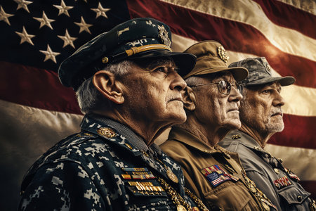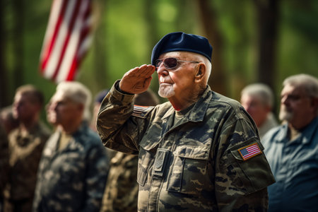 Flag United States of America is saluted on Veterans Day by a veteran US Army AI Generation