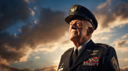 A lifetime of honor: A decorated veteran, grandpa poses in uniform and cap with the endless sky as his backdrop