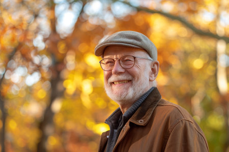 Portrait of a smiling senior man in the autumn park. Selective focus.