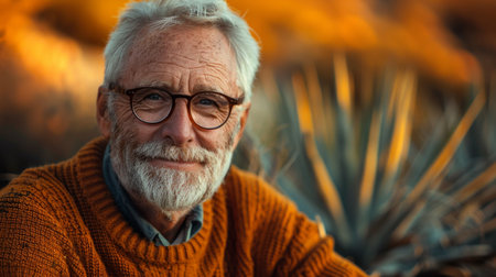 Portrait of a smiling senior man in eyeglasses and sweater.