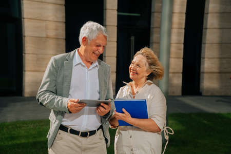 Active pensioner. Elderly man and woman deciding on their upcoming travel