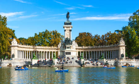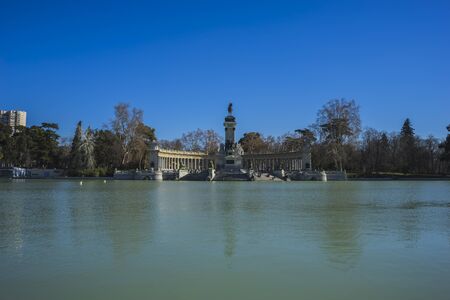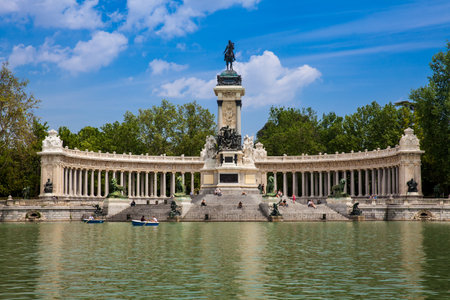 Madrid, Spain. Monument to Alfonso XII in Buen Retiro Park (El Retiro), situated on the east edge of an artificial lake near the center of the park