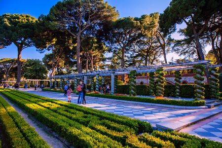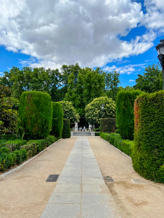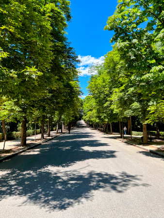 Madrid, Spain - June 05, 2017 : Mexico Avenue in Buen Retiro Park (Parque de El Retiro)- most largest and most beautiful of the Madrid parks. Madrid, Spain.