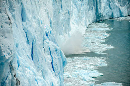 Ice Calving: A giant chunk of ice breaking off the magnificent Perito Moreno Glacier in Patagonia, Argentina.