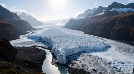 experience the breathtaking beauty of glacier cliffs through our stunning landscape photography. perfect for backgrounds, these images capture the majesty of nature in all its glory. ai generated