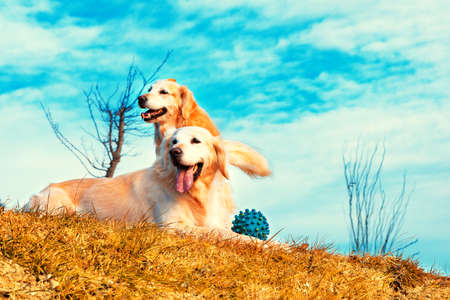 Couple of golden Retriever, sitting together
