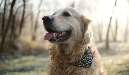 Happy pets portraits in outdoors.Funny dogs.Golden retriever