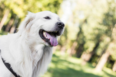 Portrait of golden retriever dog playing in the public park