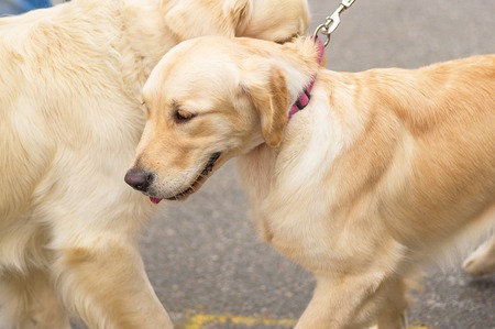 Meeting between the retriever and the poodle.