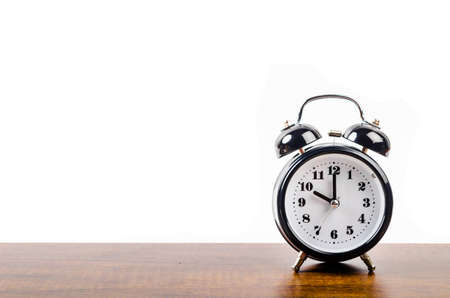 Retro alarm clock isolated on white background. Time management concept.