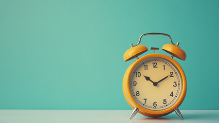Vintage Yellow Alarm Clock on Turquoise Background with Soft Shadow.