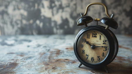 Vintage black alarm clock on a textured grey backdrop