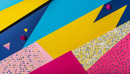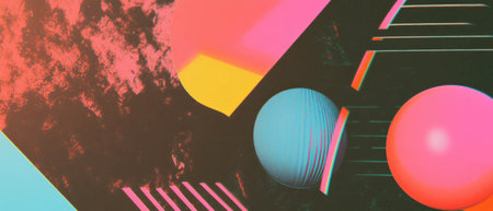Vibrant 80s design with geometric shapes and neon colors showcasing retro influences