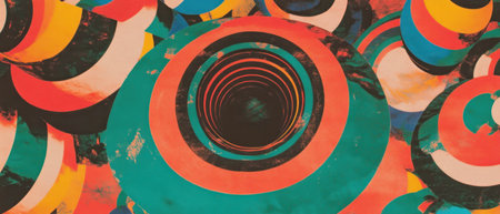 Vibrant layered circular patterns create a dynamic and colorful background display