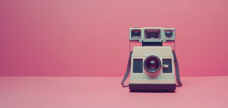 Vintage analog camera with clean lines and retro color palette, symbolizing the nostalgia, snapshots from the 80s