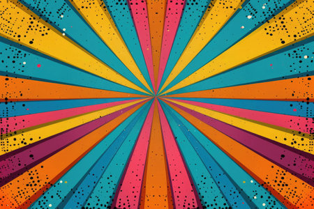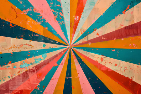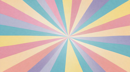 A vibrant retro sunburst design featuring a radiating pattern of pastel stripes.