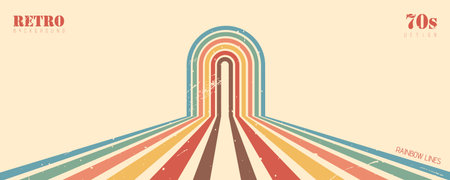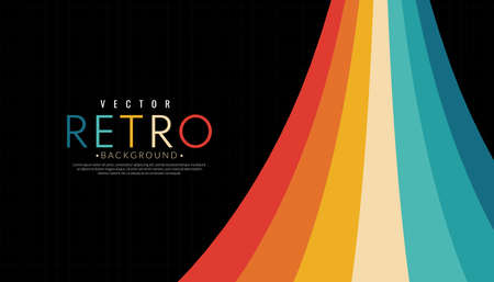 Abstract retro line background. Vintage 70s stripe colorful rainbow. Vector illustration. 1970s color wallpaper.