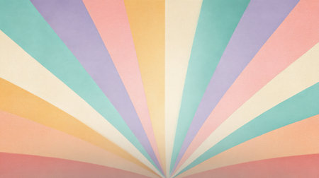 Soft pastel rainbow rays in a retro sunburst pattern, perfect for adding nostalgic vibes to posters, flyers, or product backgrounds