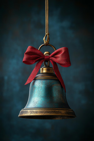 Captivating close-up image of a metallic bell showcasing vibrant colors in a bokeh effect, perfect for seasonal celebrations and festive themes.
