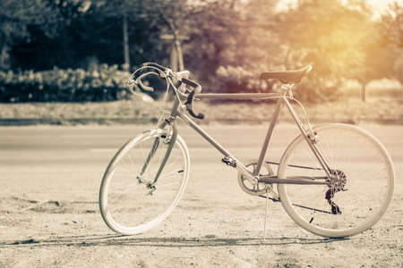 beautiful image with sport vintage bicycle at roadside ; vintage filtered tone style