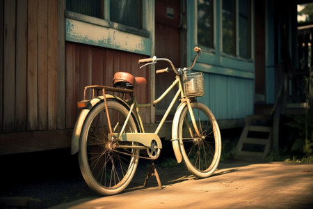 Oldfashioned elegance Closeup of retro styled bicycle standing against rough wooden wall : Generative AI