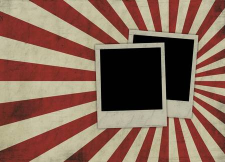 Old instant photo frames on grunge canvas