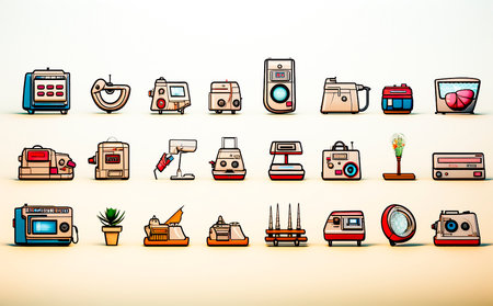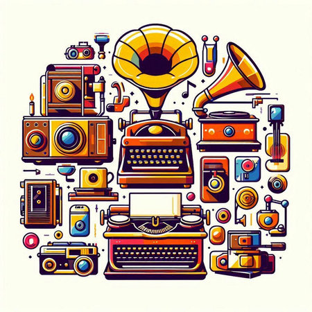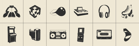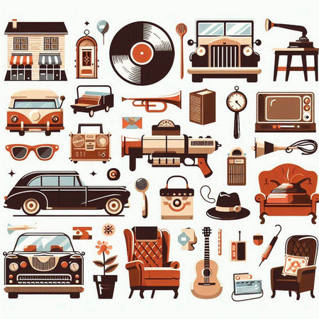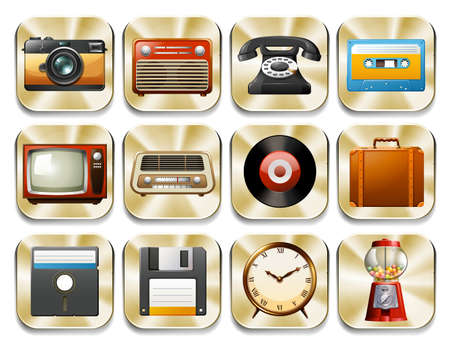 Icons of different retro things