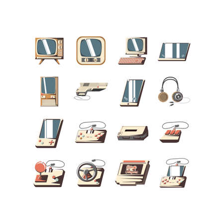 Icon set design, Videogame play leisure gaming technology entertainment obsession digital and lifestyle theme Vector illustration