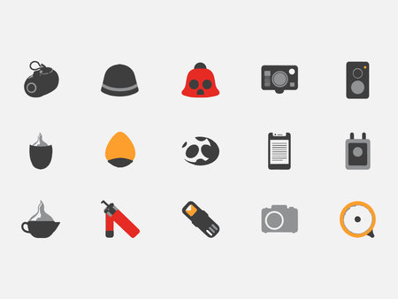 Collection of vibrant, flat-style icons featuring everyday objects and symbols.