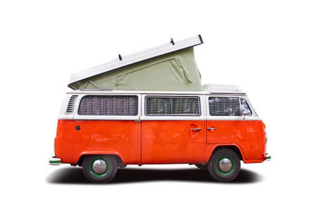 Orange van camper side view isolated on white