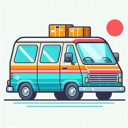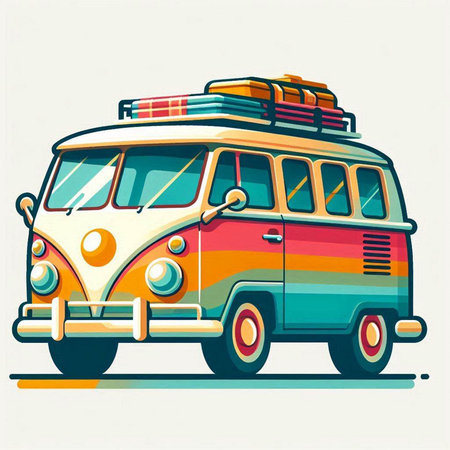Vector illustration of a retro van with luggage in the back. Flat style.