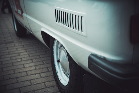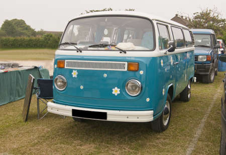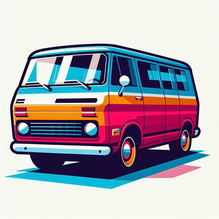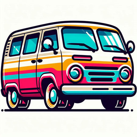 vintage car. retro van. old fashioned minivan