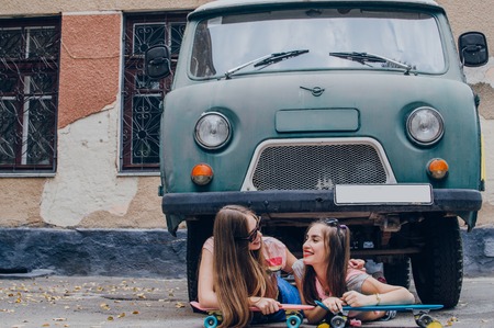 Teenage friends on a road trip on a summers day