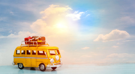 Bangkok, Thailand - June 13,2017 : Miniature yellow van with sky summer scene