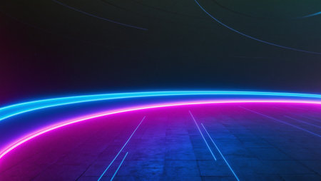 This abstract image features vibrant neon light stripes against a dark background, creating a modern and dynamic atmosphere ideal for digital art and design projects.