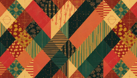 Capturing a cozy handmade vibe via layered digital texturing and precise patchwork assembly, this artwork merges folk craft traditions with contemporary graphic techniques. Suited for textile designers creating fabric swatches, interior stylists developing home accents, or crafters producing personalized stationery and apparel graphics. Its inviting warmth enhances l... AI-generated illustration.