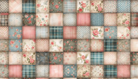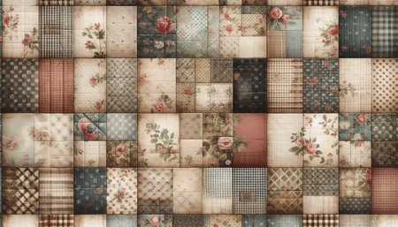 A vintage shabby chic quilting patchwork seamless pattern, Ai generated image