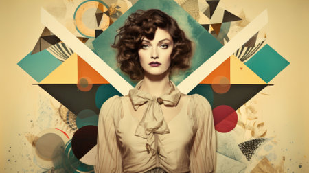 A retro inspired fashion shoot featuring bold patterns and vibrant colors, woman, AI Generative