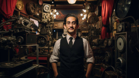 Cinema attendant in film museum iconic memorabilia celebrating cinematic heritage