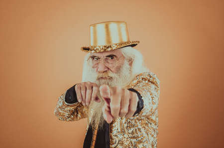 Handsome oldfashion senior old mature man. Elderly mature greybeard. Vintage man in suit.