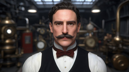 Portrait of a Steampunk Circus ringmaster with a commanding presence and an ornate coat