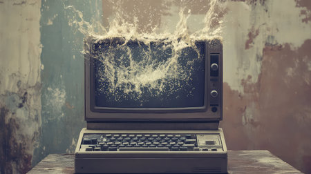 Retro Vintage Computer on Colorful Background - Nostalgic Technology and Digital Era