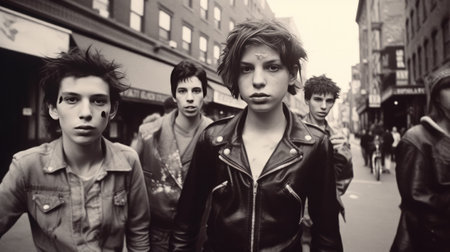 Hispanic female young adult listening with multiethnic friends outdoor in urban city style